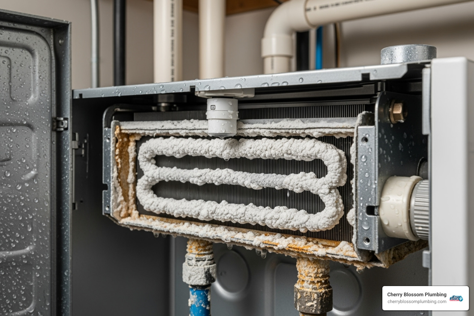 The most serious consequence is irreversible heat exchanger damage. This is the heart of your tankless system, and constant overheating from scale buildup can cause cracks and permanent damage. Once your heat exchanger is damaged, replacement costs can approach the price of an entirely new unit.